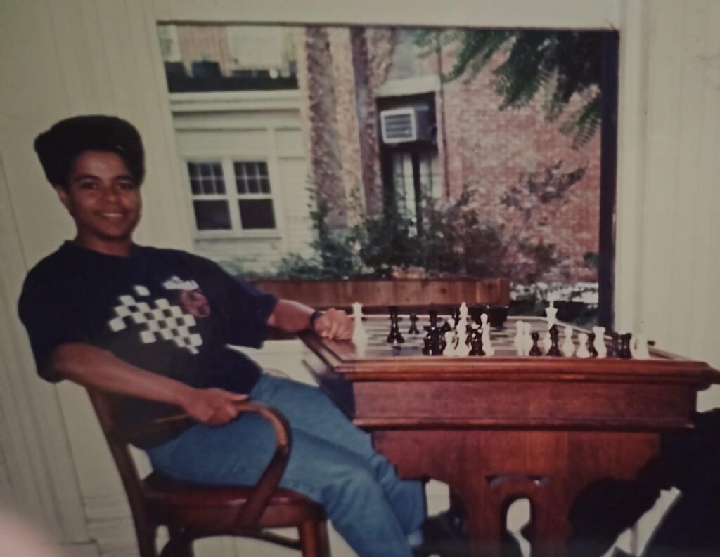 Na escola, eu era a última da fila e sentava no fundo na sala de aula. Eu comecei a levar o xadrez para a escola – o jogo era tido como-coisa-de-gente-inteligente. Eu deixava o xadrez arrumado em cima da carteira e ninguém me incomodava mais.