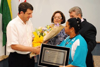 Regina recebendo o título de cidadã blumenauense (2010)