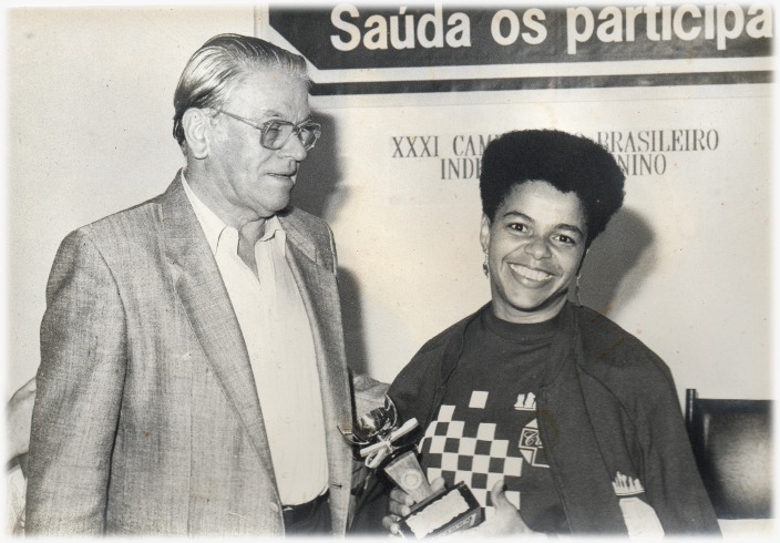 Nova Iorque, Marshall Chess Club (1991)Regina Ribeiro com Lothar Schmidt, Diretor-presidente da Cremer S/A, patrocinadora do XXXI Campeonato Brasileiro Individual de Xadrez Feminino (Blumenau. 1991)